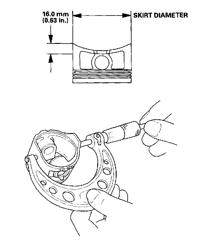 3. Measure the piston diameter at a point 16.0 mm (0.63 inch) from the bottom of the skirt.