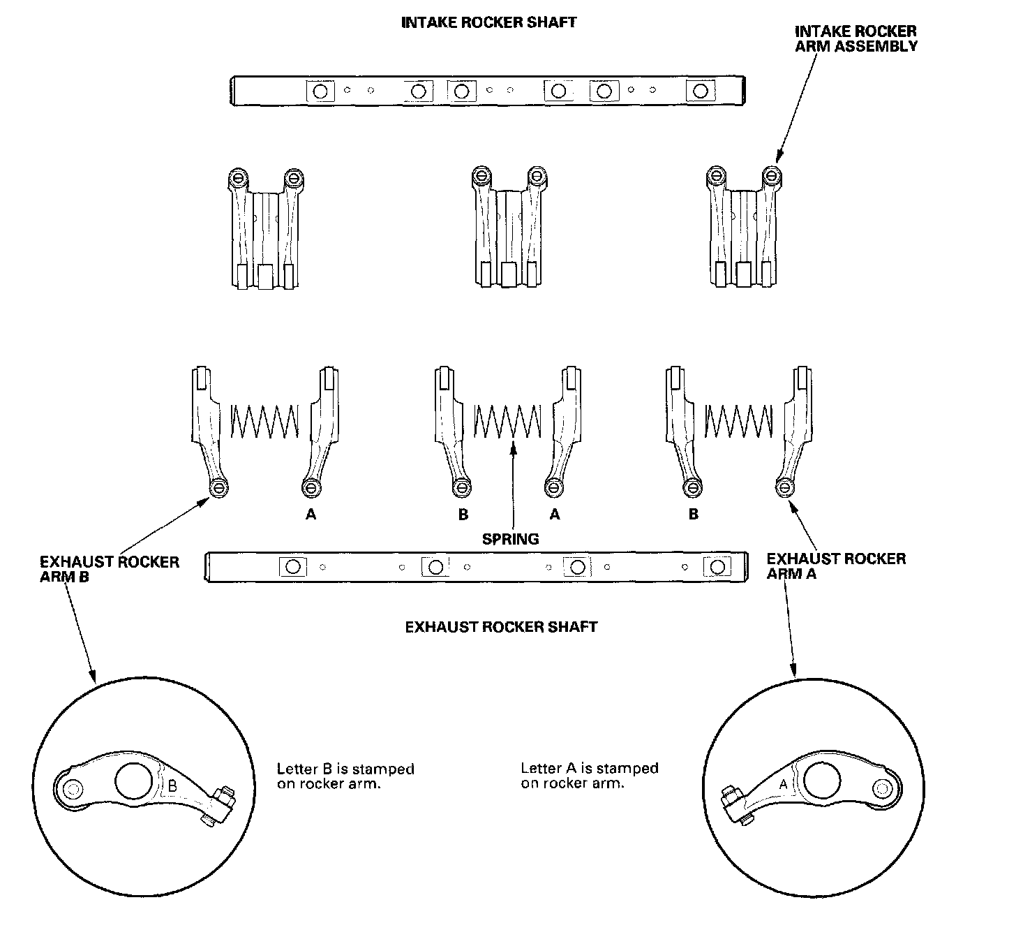 - Rocker arms must be installed in the same positions if reused.