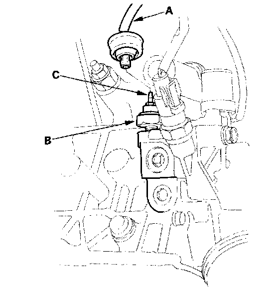 Oil Pressure Switch Test1. Remove the YEL/RED wire (A) from the engine oil pressure switch (B).