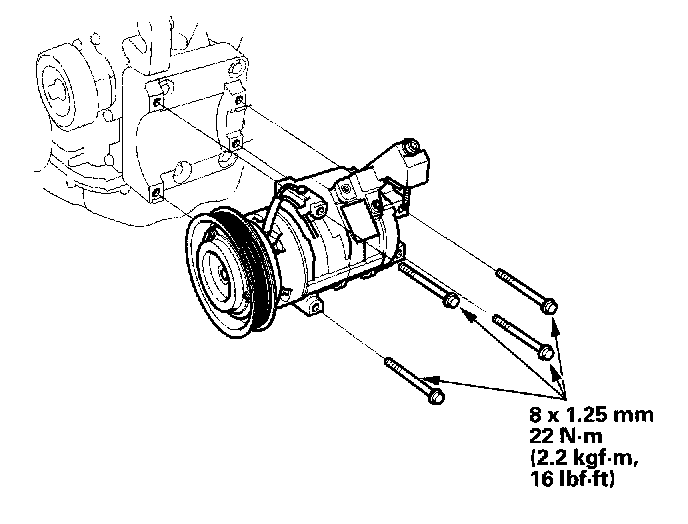 10. Install the compressor in the reverse order of removal, and note these items: