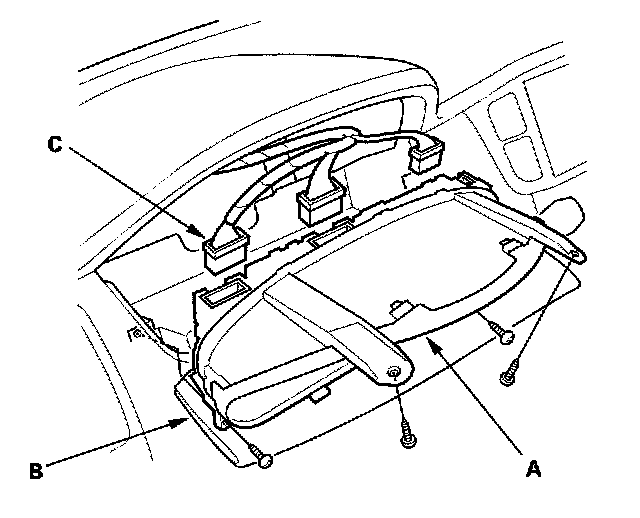 3. Disconnect the connectors (C), and remove the gauge assembly.