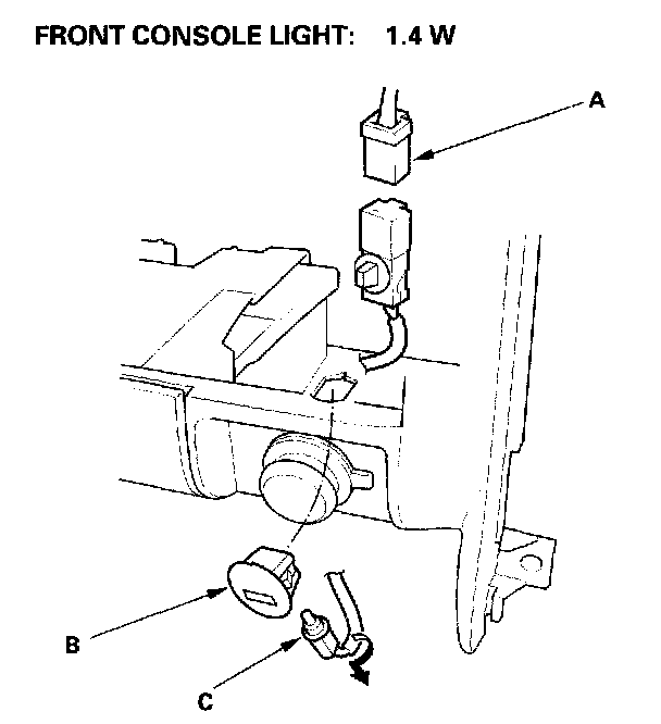 2. Disconnect the 2P connector (A) from the front console light (B).