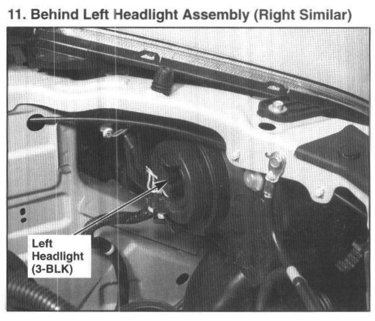 11. Behind Left Headlight Assembly (Right Similar):