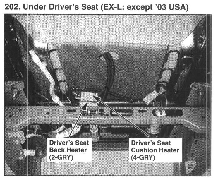 202. Under Driver's Seat (EX-L: except '03 USA):