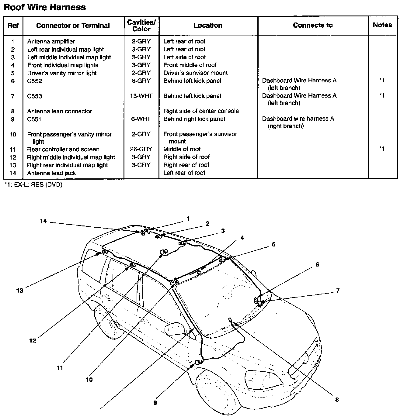 Roof Wire Harness: