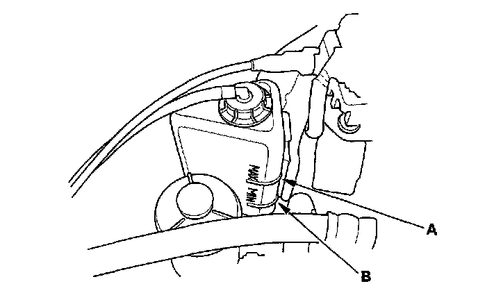 Check1. Look at the coolant level in the coolant reservoir. Make sure it is between the MAX mark (A) and MIN mark (B).