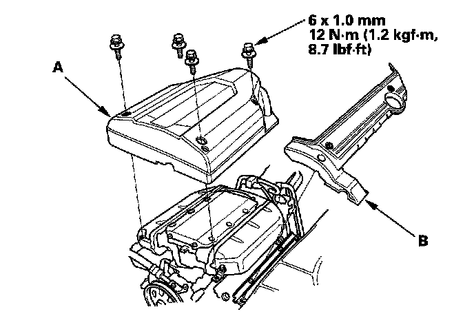 Inspection1. Remove the intake manifold cover (A) and ignition coil cover (B).