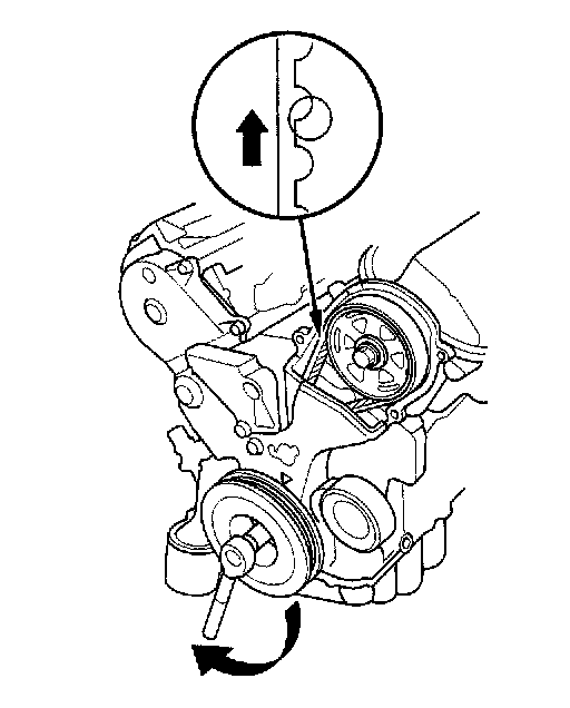 3. Inspect the timing belt for cracks and oil or coolant soaking. Replace the belt if it is oil or coolant soaked. Remove any oil or solvent that gets on the belt.