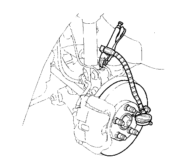 3. Attach the dial gauge. Place the dial gauge against the hub flange.