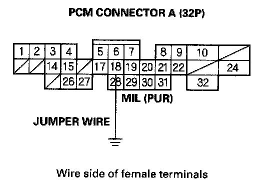 9. Connect PCM connector terminal A18 to body ground with a jumper wire.