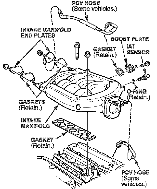 12. Remove the end plates, the IAT sensor, and the boost plate from the intake manifold. If the PCV hose connects to the intake manifold instead of the end plate, remove the hose.