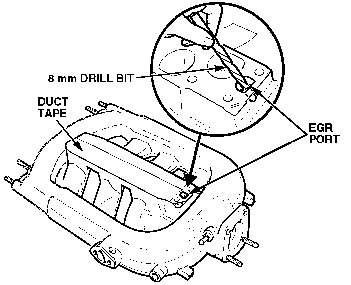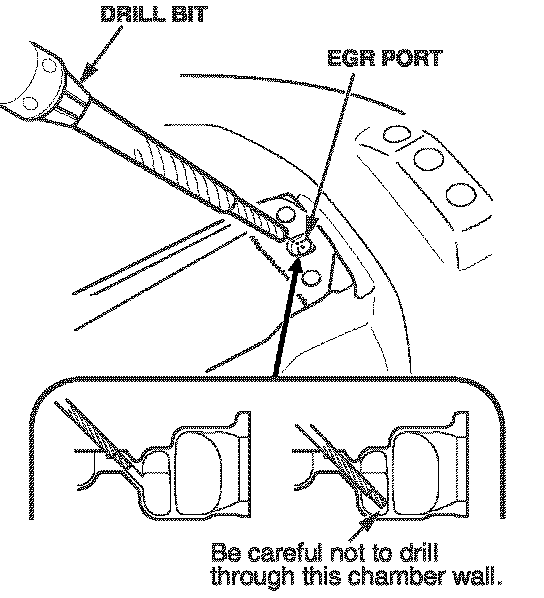 14. Use an 8 mm drill bit and carburetor cleaner to clean the EGR port in the intake manifold. Turn the drill bit only by hand. Do not use a power drill.