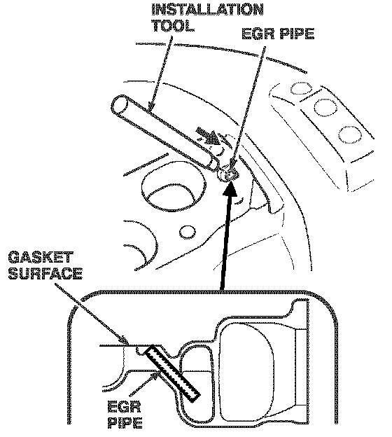 20. Use the installation tool and a small hammer to drive the EGR pipe into the port until it is flush with the port. Make sure the pipe will not contact the gasket after installation.