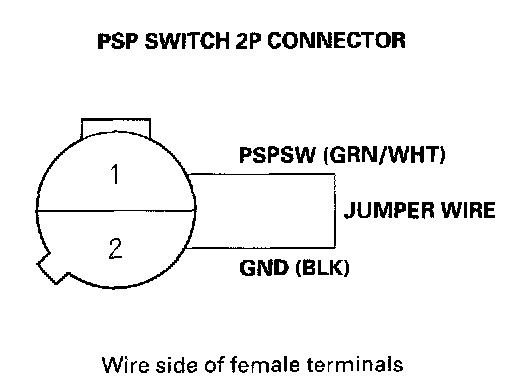 9. At the harness side, connect PSP switch 2P connector terminals No.1 and No.2 with a jumper wire.