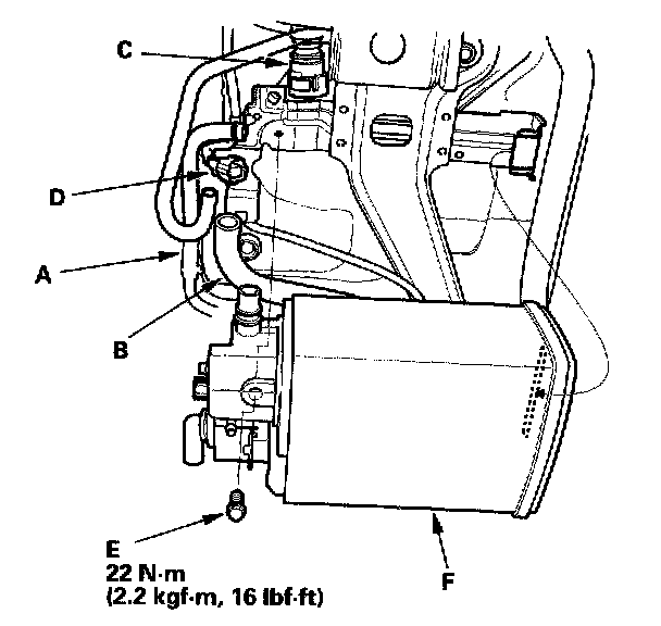 4. Remove the EVAP canister (F).