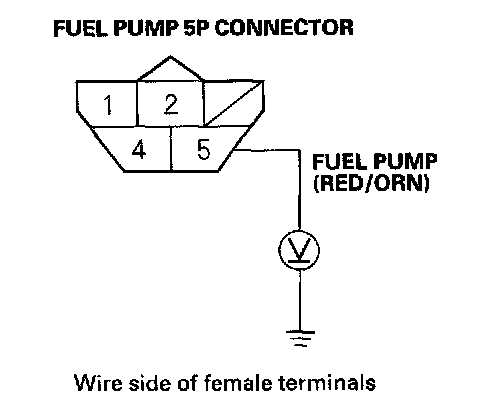 7. Check that battery voltage is available between the fuel pump 5P connector terminal No.5 and body ground when the ignition switch is turned ON (II).