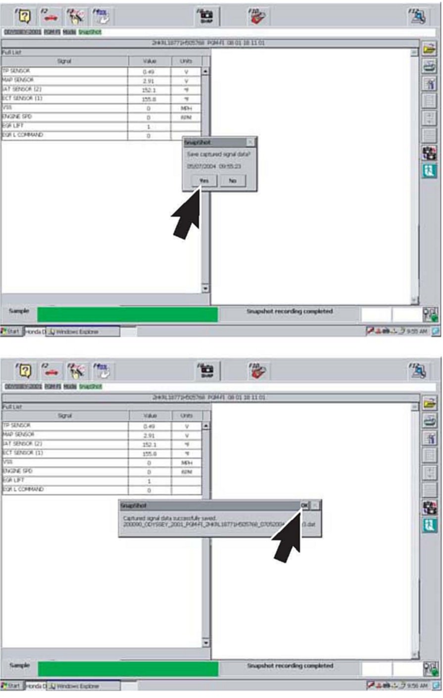 12. When the drive is complete, the Snapshot dialog box is displayed. Select Yes, then select OK. This stores the snapshot.