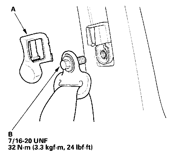 9. Install the front seat belt and retractor in the reverse order of removal, and note these items: