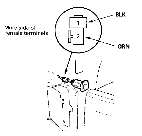 4. Turn the ignition switch to ACC (I), and check for voltage between the No. 2 terminal and body ground. There should be battery voltage.