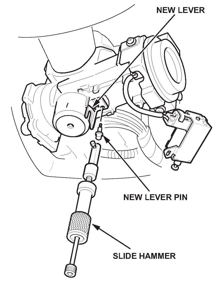 10. Place the new lever into the ignition switch and install the new lever pin with the slide hammer.