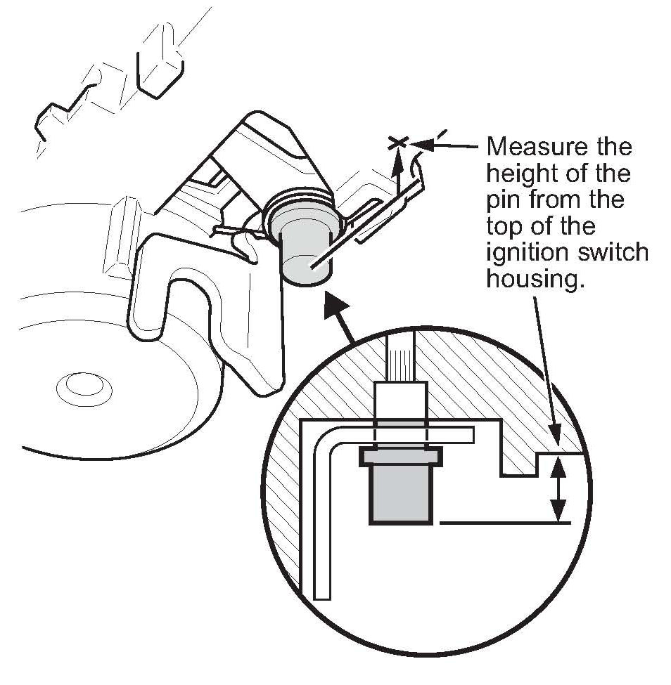 7. Measure the installed height of the interlock lever pin with vernier calipers. You will need this measurement when installing the new lever pin.