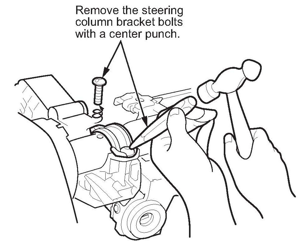 12. Remove the two break-away bolts from the steering column bracket.