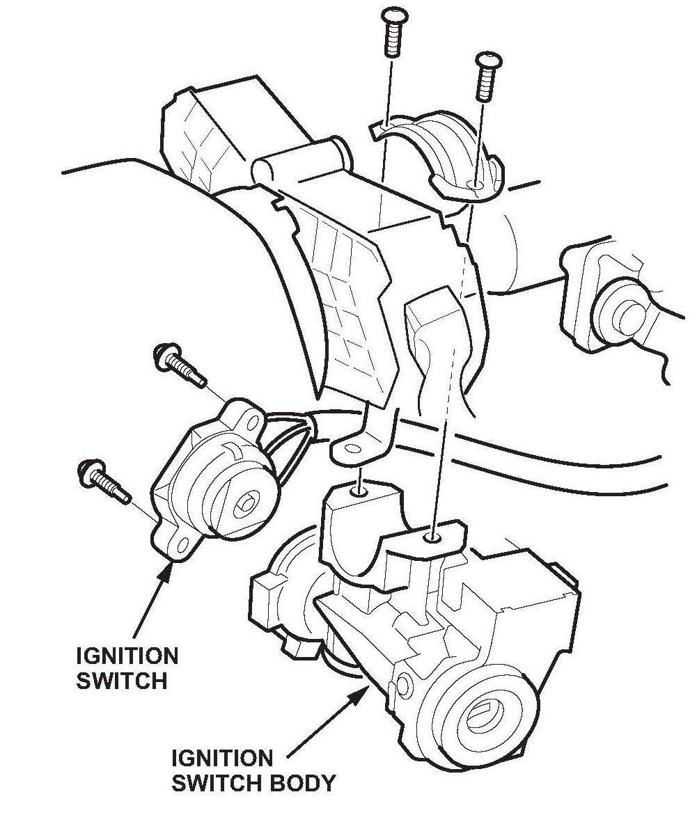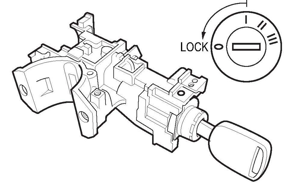 13. Remove the ignition switch body from the ignition switch. Leave the electrical part of the ignition switch in the vehicle.
