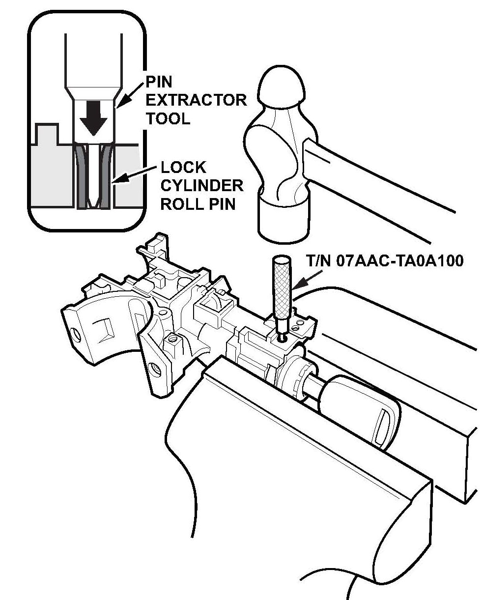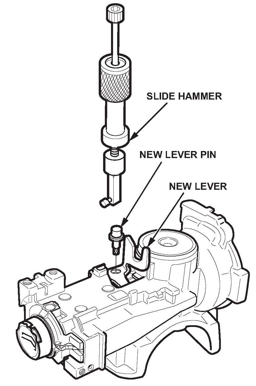 31. Place the new lever into the ignition switch and install the new lever pin with the slide hammer.