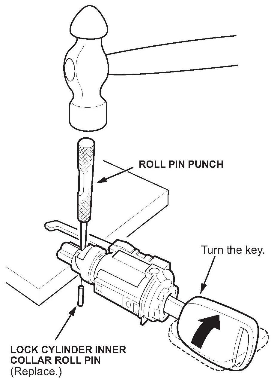 17. Remove the lock cylinder roll pin.