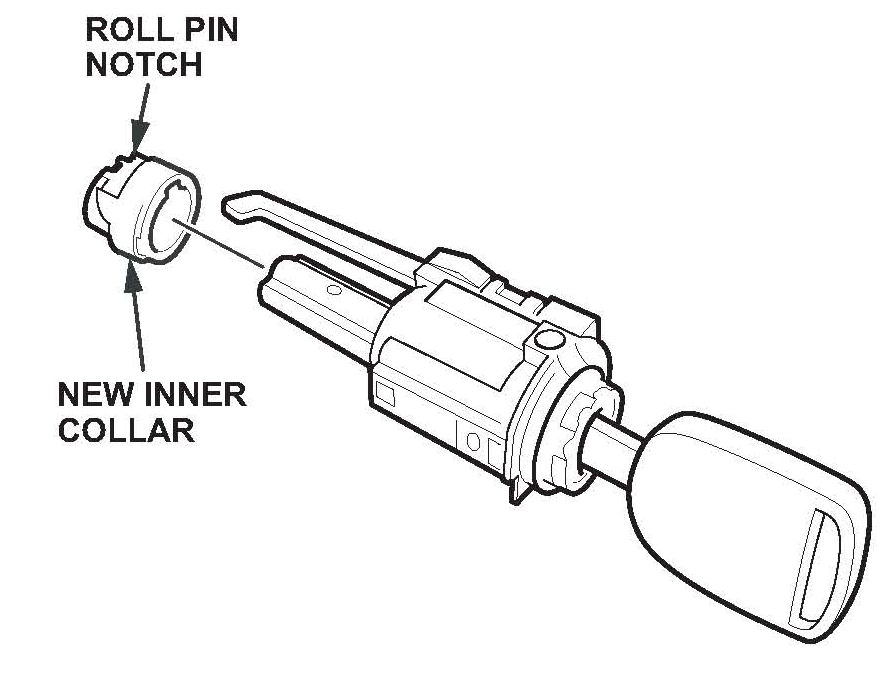 25. Slide the inner collar onto the lock cylinder shaft, making sure that the roll pin notch on the inner collar is facing up.