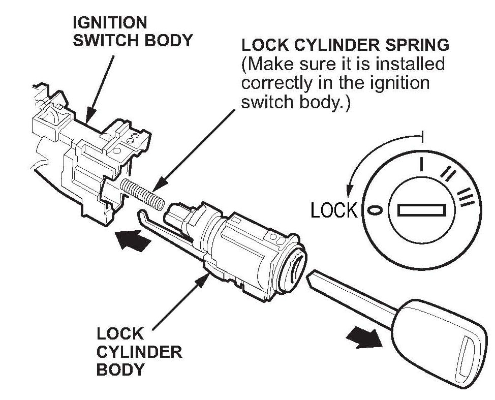 NOTE: If the lock cylinder spring also comes out, reinstall it in the switch body.