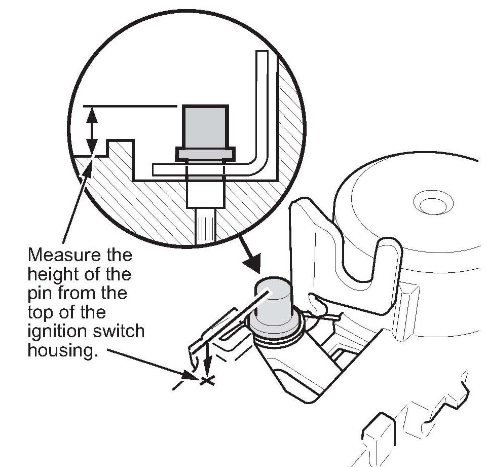 9. Measure the installed height of the interlock lever pin with vernier calipers. You will need this measurement when installing the new lever pin.