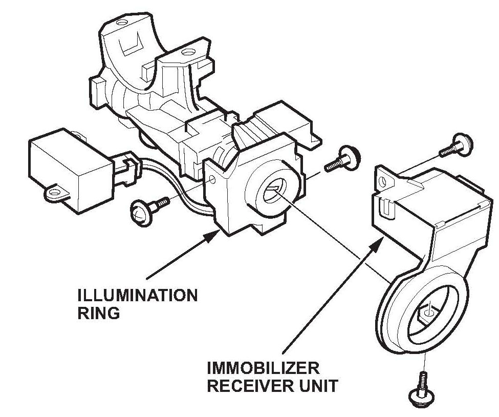 14. Remove the immobilizer receiver unit from the ignition switch body, and disconnect the receiver unit connector.