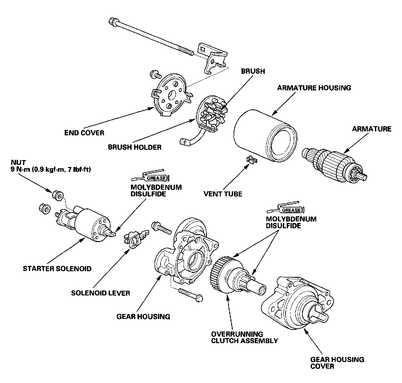 2. Disassemble the starter as shown at the beginning of this procedure.