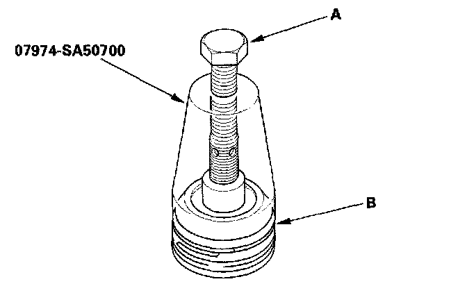 5. Adjust the special tool with the adjusting bolt (A) until its base is just above the groove around the bottom of the boot. Then slide the clip (B) over the tool and into position on the boot.