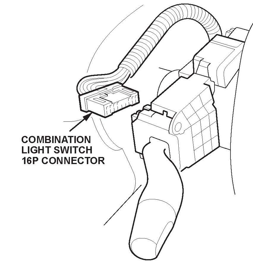2. Disconnect the 16P connector from the combination light switch. Then carefully pull the wire harness to the right of the steering column.