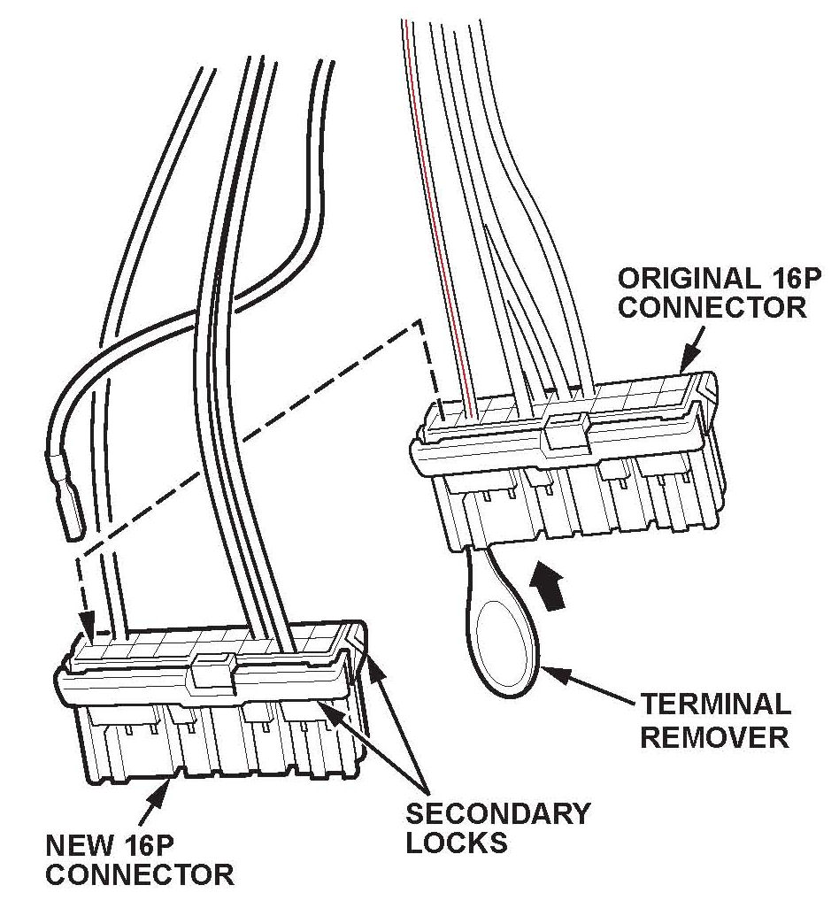 18. Insert the new RED/WHT wire into its proper position in the 16P connector, then snap the connector secondary locks closed.