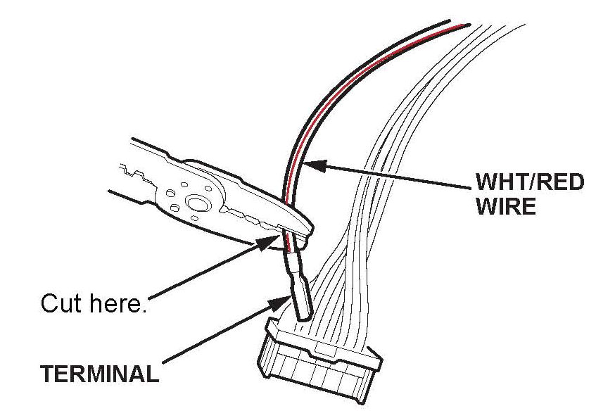 14. Cut the vehicle side WHT/RED wire near the terminal, then strip off 7 mm of insulation from the end of the wire.