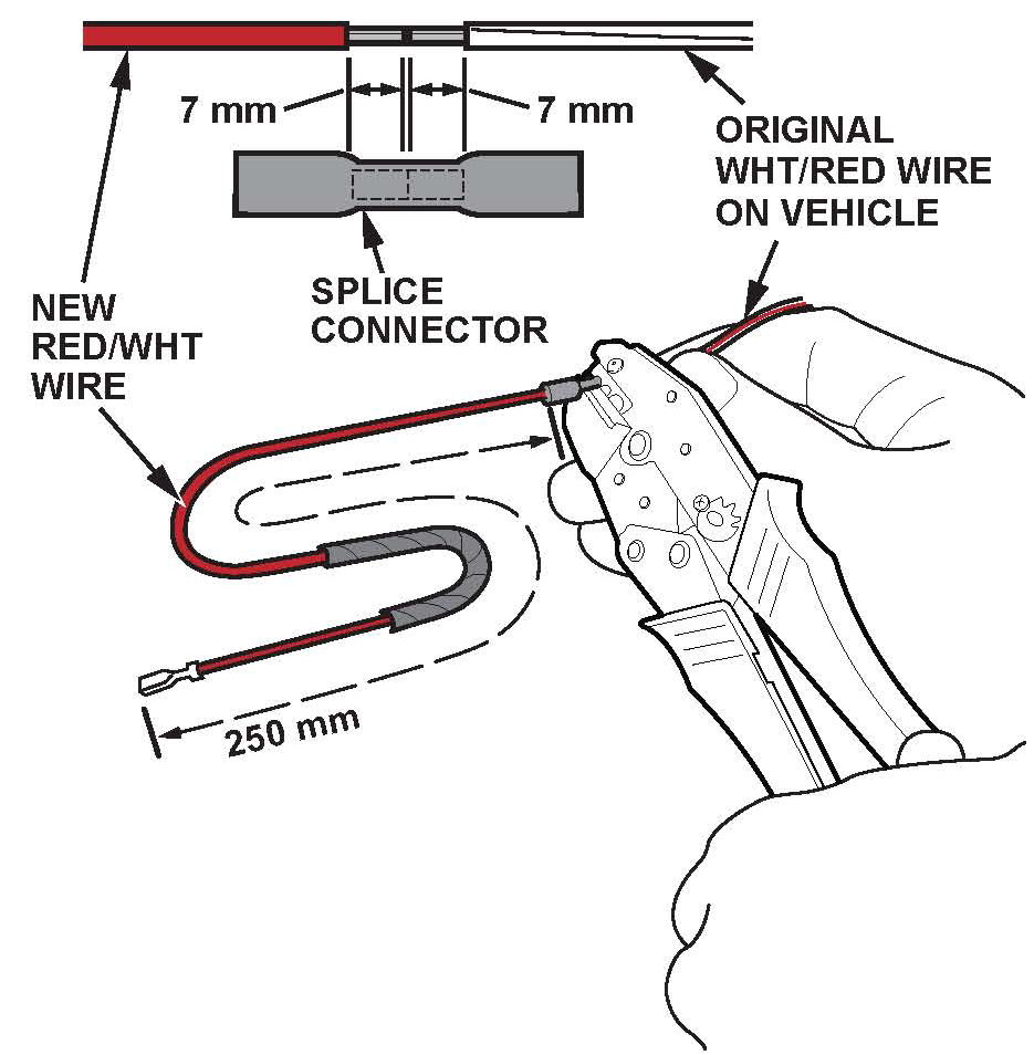 13. Strip off 7 mm of insulation from the opposite end of the new RED/WHT wire.