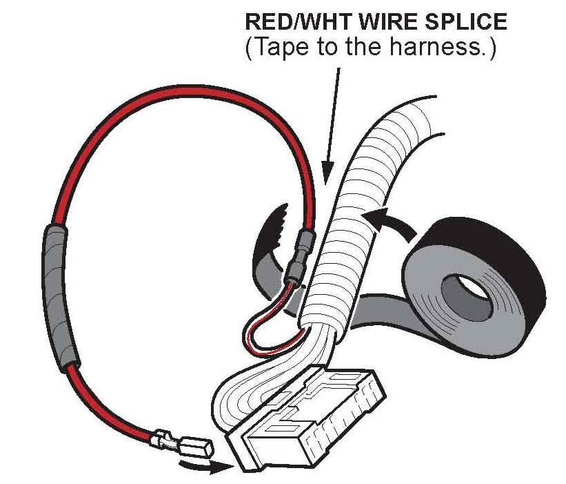 12. On the new RED/WHT wire provided in the kit, measure 50 mm from the terminal end, and wrap a 50 mm section of the wire with three turns of electrical tape. This taped section of the wire will be secured to the combination light switch in step 22.