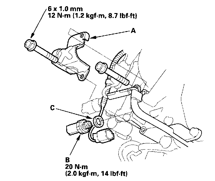 3. Replace the 3rd clutch pressure switch, then install a new one with a new sealing washer (C). Tighten the switch on the metal part, not the plastic part.