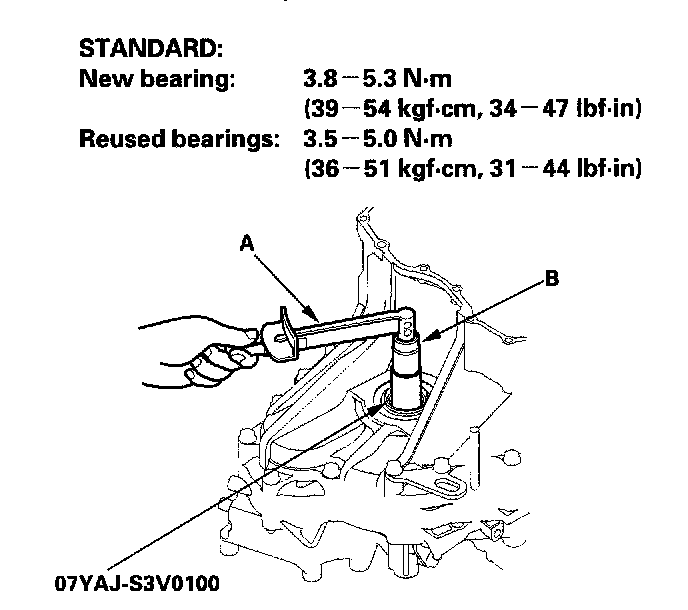 New bearing: 3.8 - 5.3 Nm (39 - 54 kgf-cm, 34 - 47 inch lbs.)