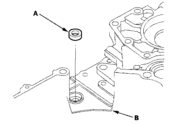 1. Remove the oil seal (A) from the torque converter housing (B).
