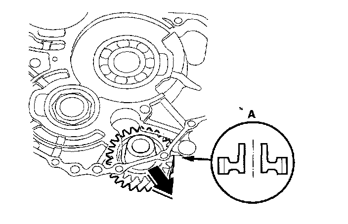 7. Place the reverse idler gear (A) in the transmission housing as shown, then slide it in the direction shown.