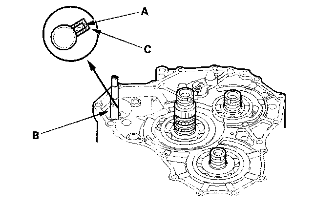 8. Align the spring pin (A) on the control shaft (B) with the transmission housing groove (C) by turning the control shaft.