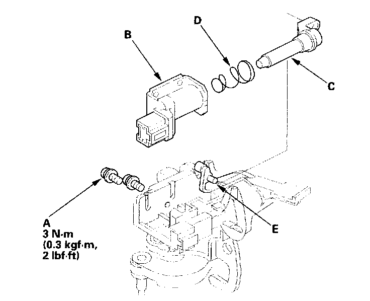 4. Install the shift lock solenoid by aligning the joint of the shift lock solenoid with the tip of the shift lock extension (E), then tighten the screws.