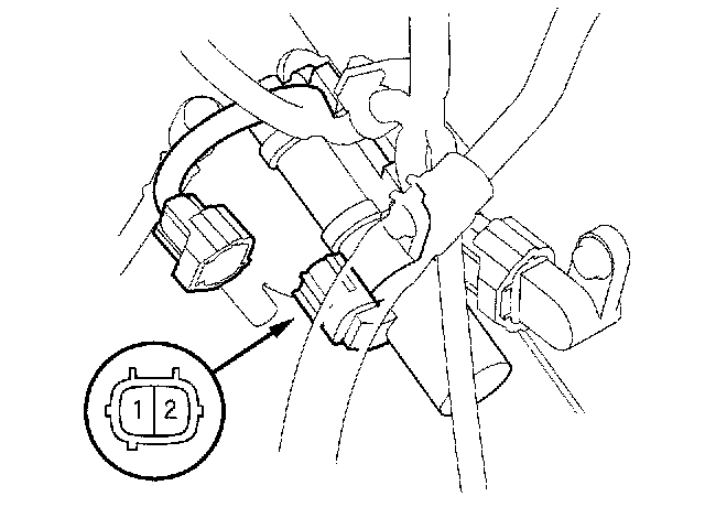 4. Connect the No. 1 terminal of A/T clutch pressure control solenoid valve C to the battery positive terminal, and connect the No. 2 terminal to the battery negative terminal. A clicking sound should be heard. Remove A/T clutch pressure control solenoid valve C if no sound is heard.