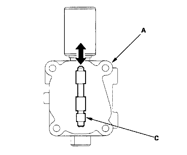 8. If the valve binds or moves sluggishly, or if the solenoid does not operate, replace A/T clutch pressure control solenoid valve C.