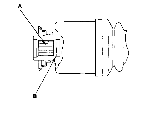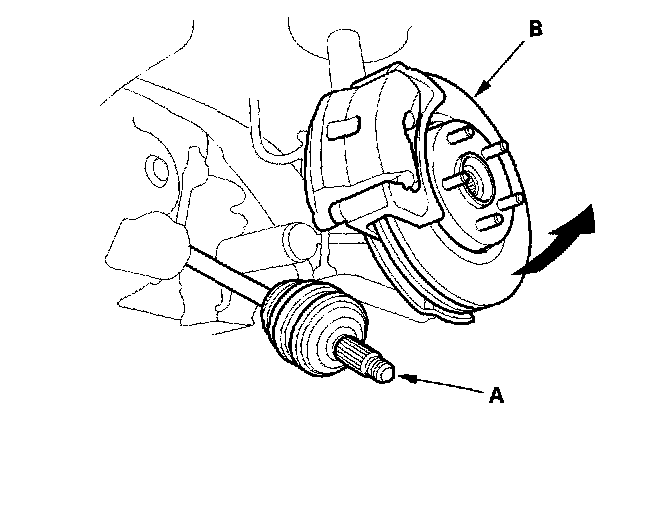 4. Install the outboard joint (A) into the front hub (B).