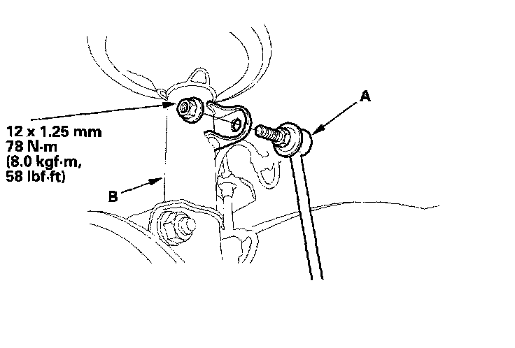 7. Install the stabilizer link (A) to the damper (B).